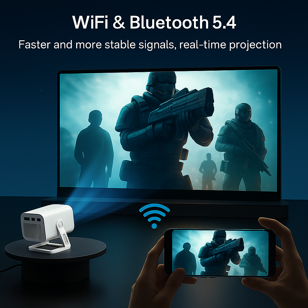 Just power it on, connect your device via Wi-Fi or Bluetooth, and you’re ready to watch.