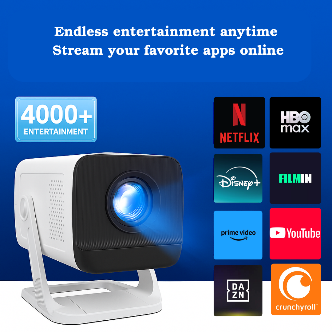 Turn any wall into your personal cinema with access to Netflix, Disney+, Prime Video, YouTube, and more.
